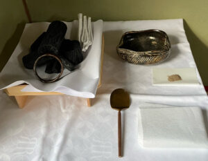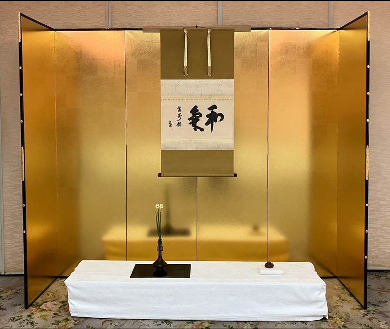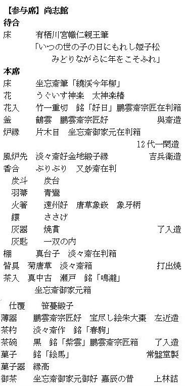 数日来の、厳しい寒さの中、午年の初茶会を行いました。約250名のお客様方にお越しいただき、参与の先生方による尚志館の濃茶席、幹事による青雲の間の薄茶席、そして点心席を楽しんでいただきました。