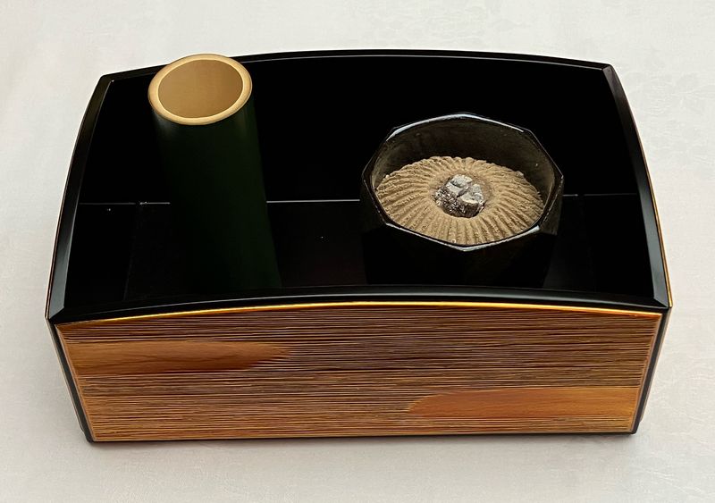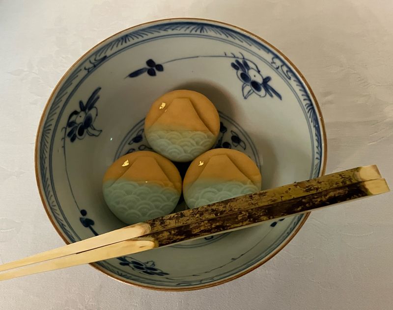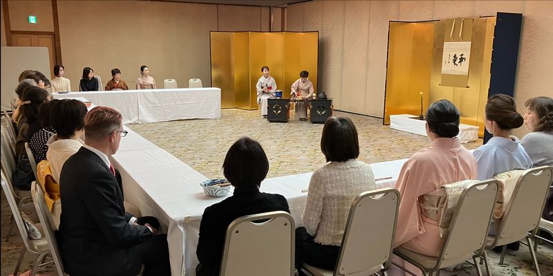 濃茶席は干支の「絵馬」、薄茶席は、明るい年を願う「黎明」(常盤堂製)という銘のお菓子を用意いたしました。若々しい青年部の皆さまにもお手伝いいただき、また恒例の福引では当たりくじの方に拍手が贈られ、早咲きの梅香とともに、早春の華やいだ雰囲気のただよう一日となりました。